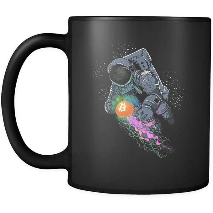 Bitcoin BTC Crypto Space - Crypto Blockchain 11oz Funny Black Coffee Mug - Astronaut Jelly Cryptocurrency - Friends Gift - Both Sides Printed