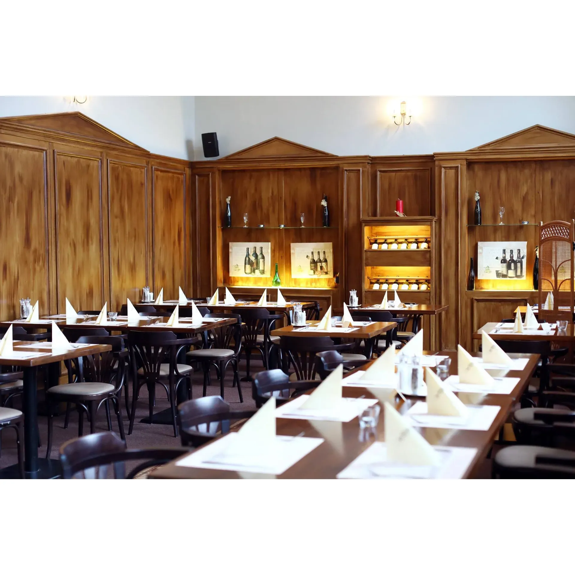 Adding to the restaurant's allure is the captivating interior, which strikes the perfect balance of classic elegance and homely comfort with its high ceilings and rich, dark brown accents. The overall atmosphere speaks to those seeking a sophisticated dining venture without pomp or pretense.