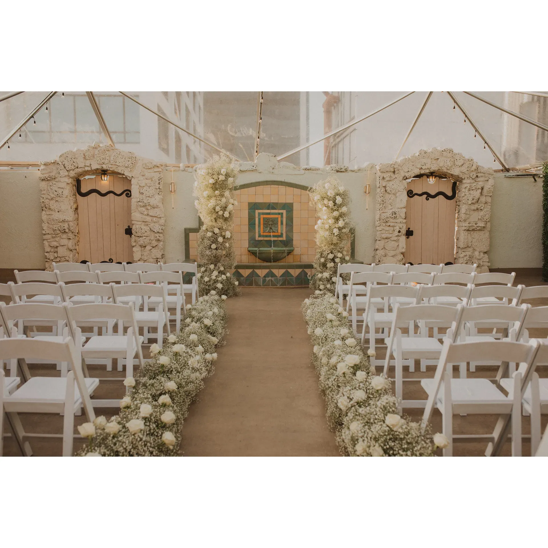 Getting ready for a special day is made comfortable with private and elegant preparation suites, where every detail is thoughtfully considered to provide a serene sanctuary before the festivities. For events, the venue offers comprehensive solutions, including in-house amenities such as chairs, dishes, and bars, complemented by the flexibility to incorporate personal touches through guest-provided vendors.