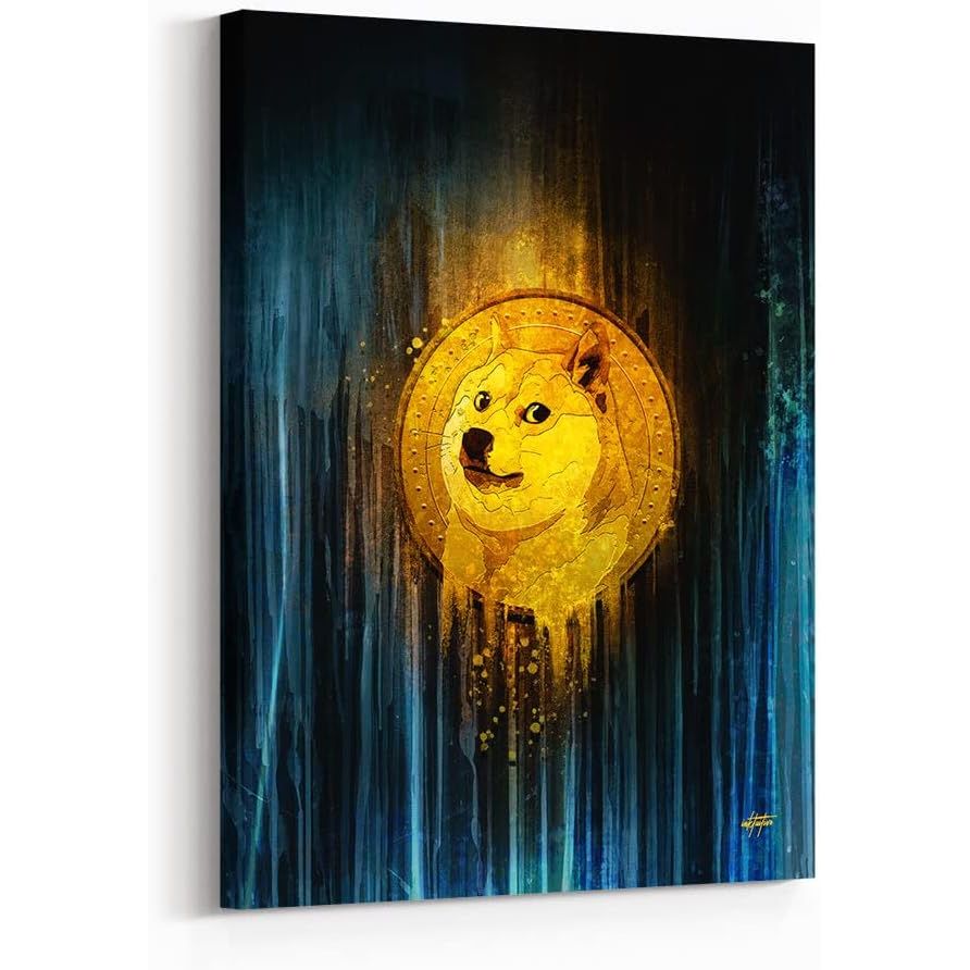 The Inktuitive Dogecoin Crypto Inspirational Canvas Wall Art is a motivational decor piece designed for use in bedrooms, living rooms, and business offices. Measuring 24 x 18 inches, this canvas art features a stylish and sleek design that is sure to enhance the aesthetic of any space. The artwork celebrates the popular digital currency Dogecoin, known for its fun and lighthearted branding.