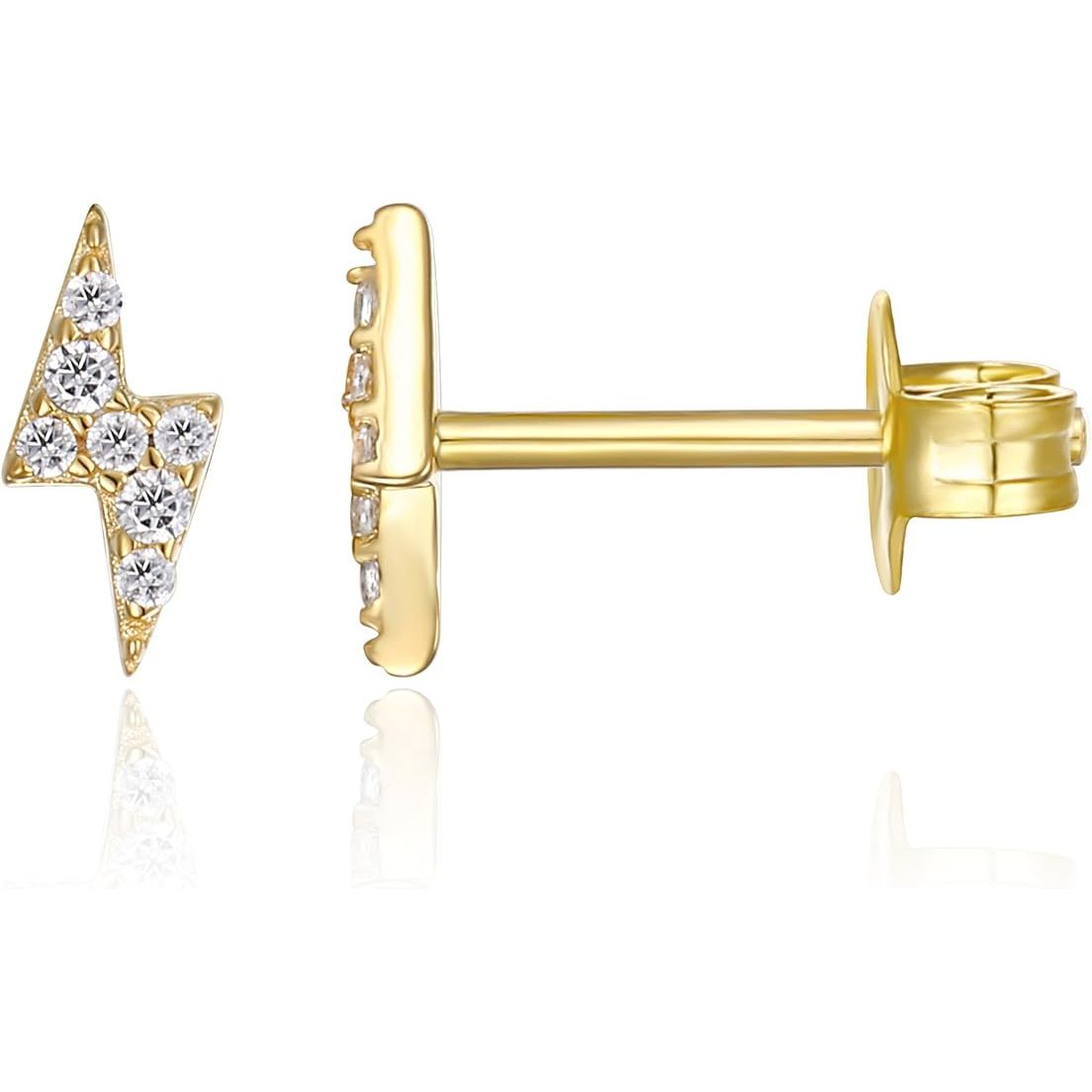 The PAVOI 14K Gold Plated Sterling Silver Celestial Lightning Bolt, Moon and Star Earrings are a stylish and elegant addition to any woman's jewelry collection. These dainty earrings feature a celestial theme with lightning bolts, moons, and stars, giving them a trendy and modern look. The earrings are made of high-quality 925 sterling silver, plated with 14K gold for a luxurious finish.