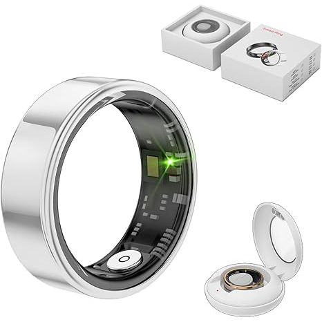 Smart Ring Health Tracker, Anel Inteligente para Homem, Anéis de Saúde para Mulheres e Homens, Baterias de Longa Duração Anel de Sono, Rastreador de Fitness à Prova d'Água (Prata, 8#)