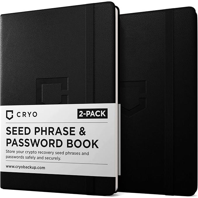 Included with the CRYO seed phrase storage notebook are two recovery phrase backup books, allowing you to have a backup in a separate, safe location. Keep one handy for everyday use and store the other in a secure spot for peace of mind. Stay organized and protected with the CRYO book, the ultimate solution for securely backing up your valuable crypto information. Description by ChatGPT.