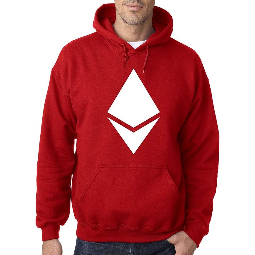 The hoodie prominently displays the Ethereum symbol, making it a statement piece for fans of this popular cryptocurrency. The pullover style and sweatshirt material make it a versatile option for casual outings or lounging at home. It is available in a range of sizes to ensure a comfortable fit for everyone.