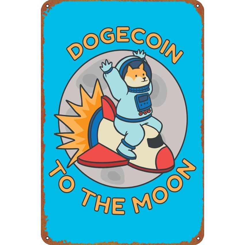 Dogecoin to the Moon Space Club Bedroom Office Coffee Bar Wall Art Retro Poster Tin Signs 12X8 Inch