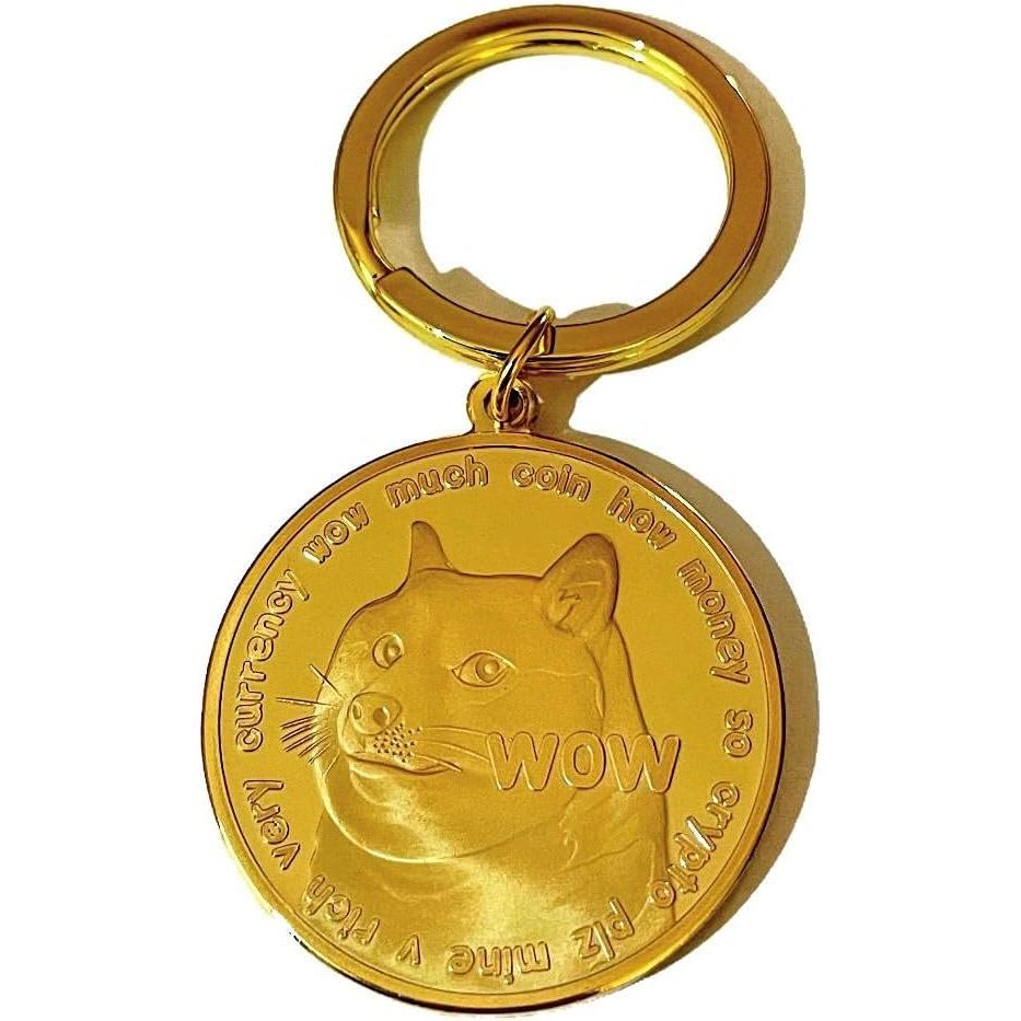 Overall, the Gold Dogecoin Coin Keychain is a sleek and eye-catching accessory that is sure to spark conversation and interest among fellow Dogecoin supporters. Its small size makes it convenient to carry around, while the gold plated finish gives it a luxurious and high-quality look. Whether you're a cryptocurrency enthusiast or simply looking for a unique keychain, this limited edition collectible is a great choice. Description by ChatGPT.