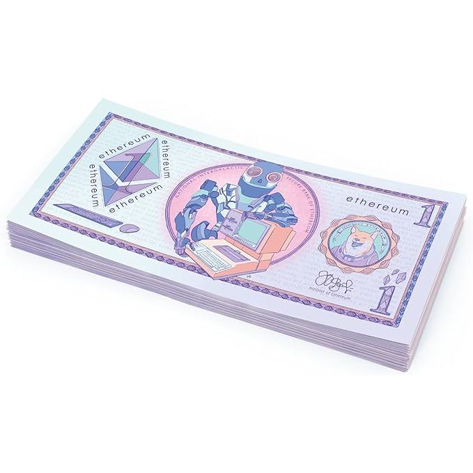 Let your creativity flow with Ethereum Scratch Cash—use the notes to fill gift packages, decorate wedding favors, or as props for your videos or photos. Each pack contains 100 notes of Ξ 1 Ethereum Scratch Cash, perfect for adding a touch of exclusivity and sophistication to any occasion.