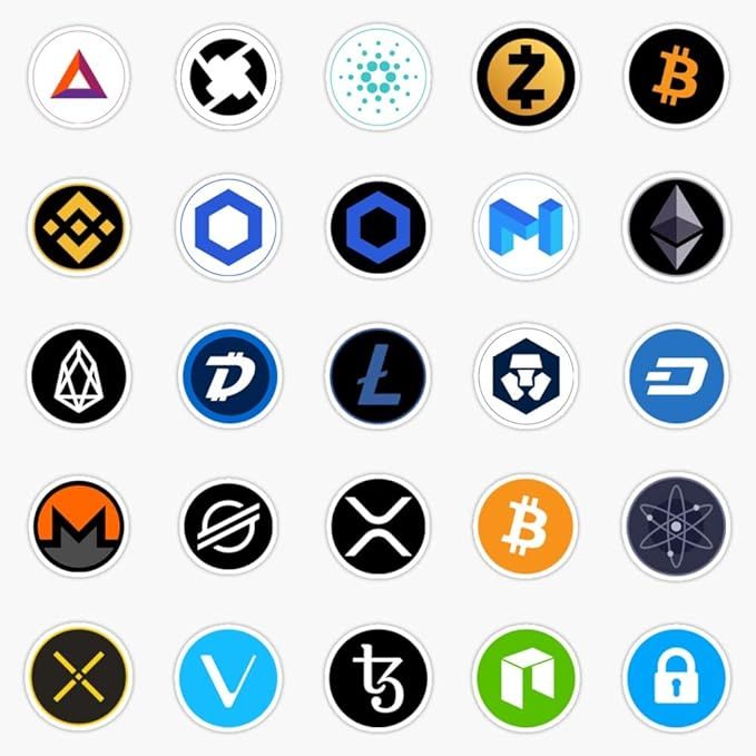 These stickers are perfect for crypto enthusiasts looking to decorate their laptops, water bottles, cars, or any other personal belongings with their favorite cryptocurrency symbols. The set includes stickers for Bitcoin, Litecoin, Ethereum, XRP, Chainlink, Tezos, and others, making it a comprehensive collection for fans of multiple cryptocurrencies.